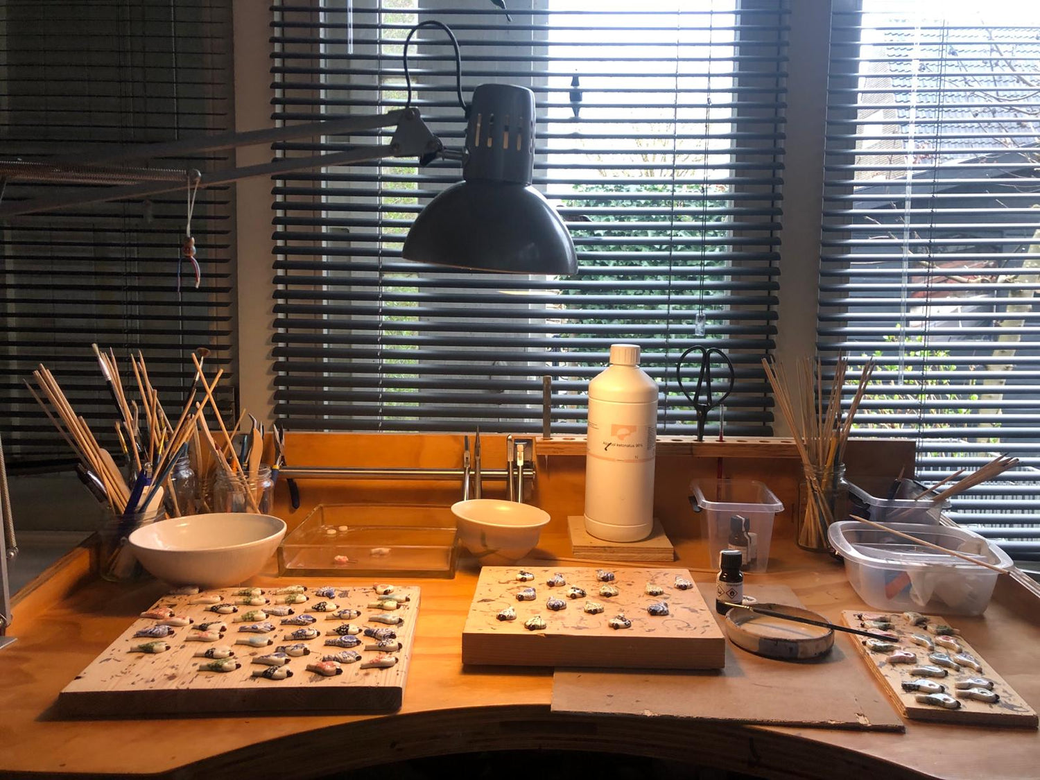 Na het volgen van de keramiekopleiding in Gouda had ik nooit gedacht dat ik ooit met zulke kleine stukjes porseleinklei zou gaan werken als ik nu doe. Grote en kleine vazen draaien, dat was mijn passie, en zo ben ik mijn keramiekatelier begonnen.