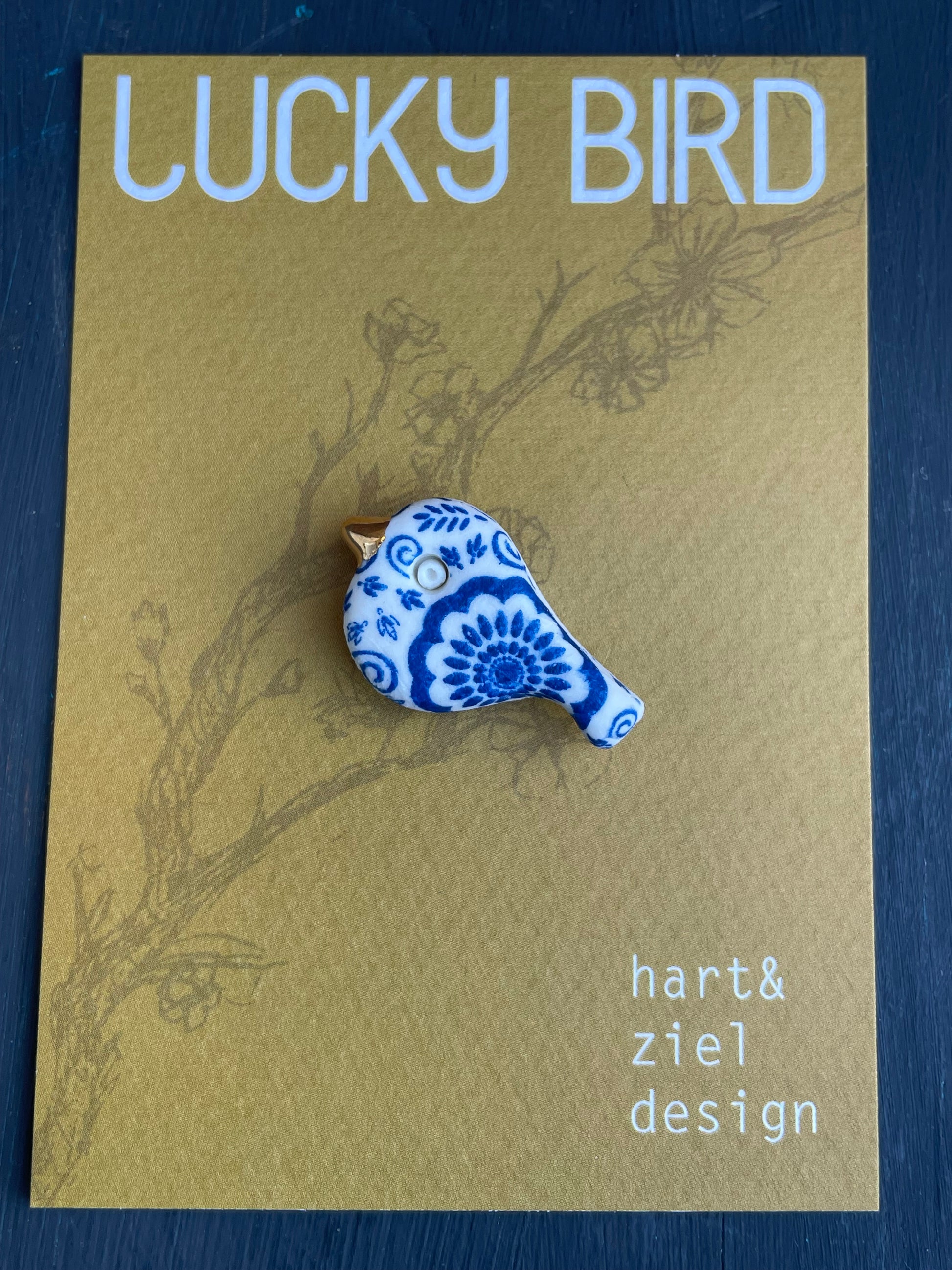 - De Lucky Bird broche wordt geleverd op een mooi kartonnen kaartje van 8,5 x 5,5 cm